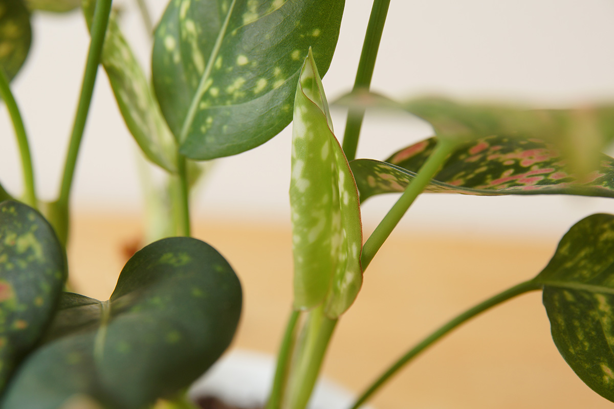 そしてその新葉ですが、これは個体差もある可能性もありますが、状態がよくなるとアグラオネマ・アンニャマニーの新葉はふちが赤系の色をしていて、これは以前の回復途中では見れなかった様子です。