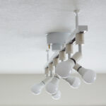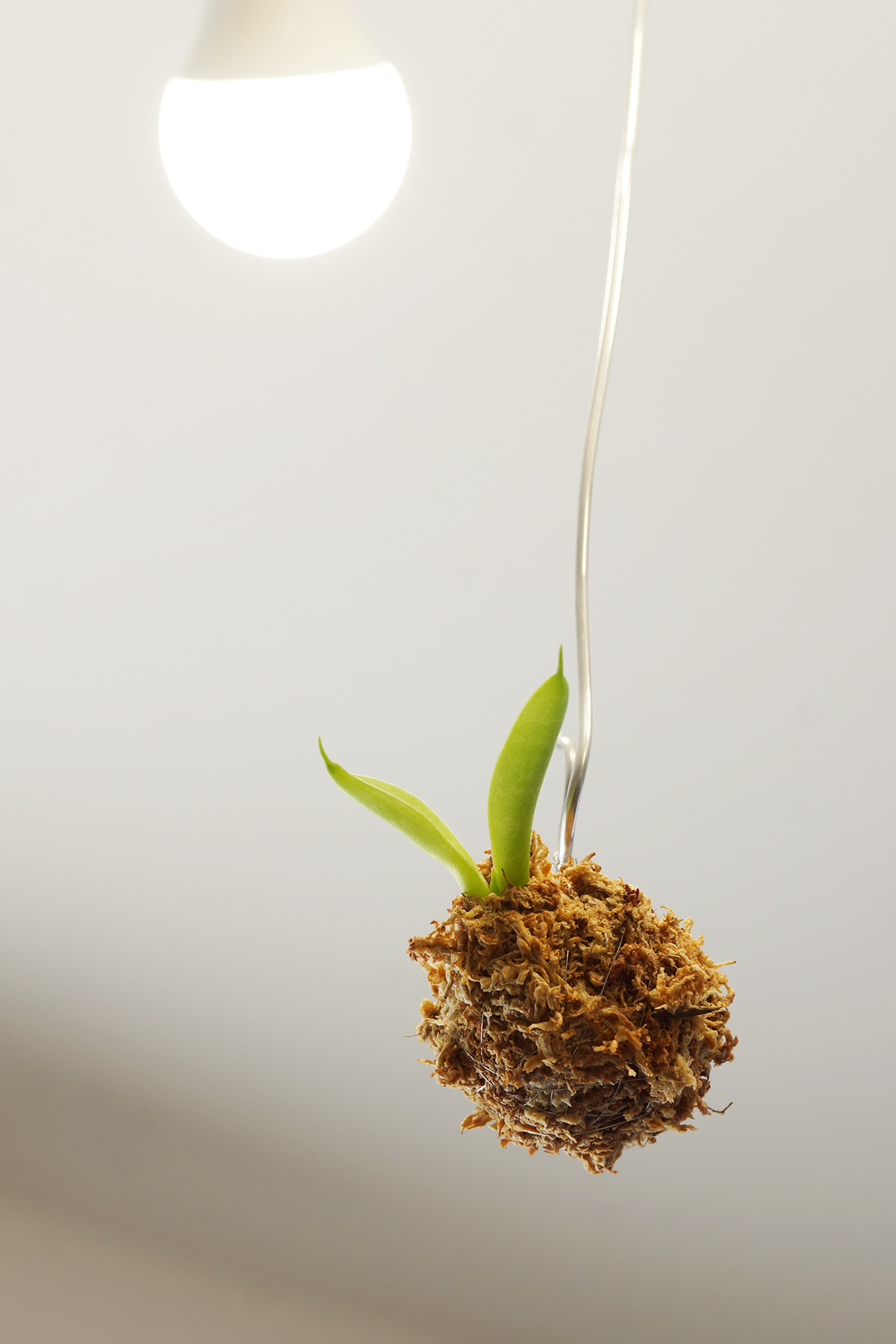 そしてこちらがダクトレールへ吊り下げた、UCHIの苔玉サンスベリア・ボンセレンシスの様子です。