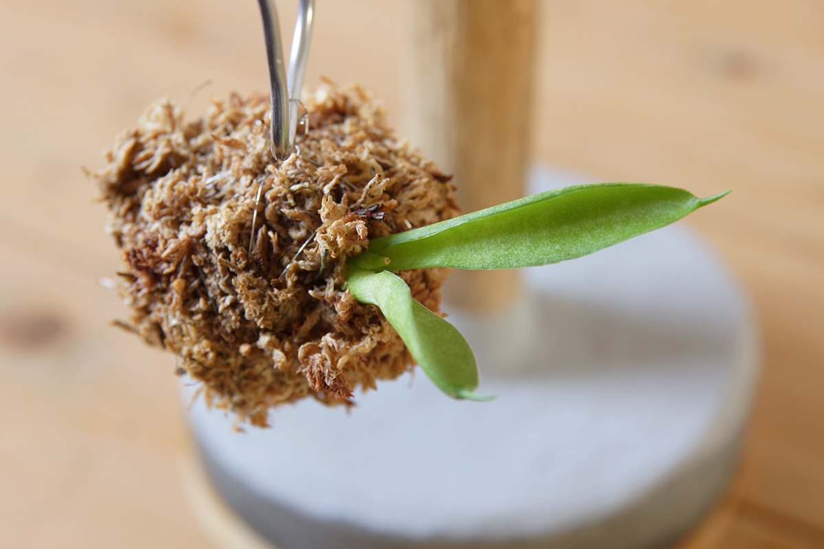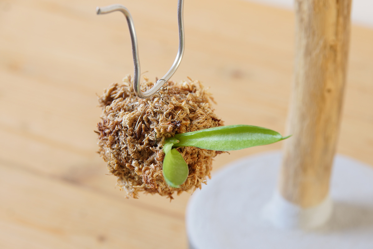 しっかりと固めに水苔を丸め、しっかりとステンレスワイヤーで固定しました。