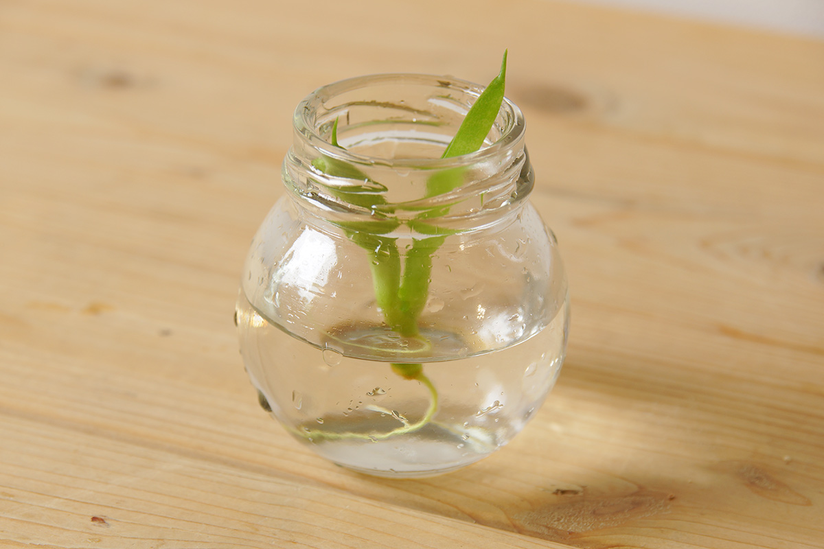 こちらが2月下旬辺りからずっと水挿しにしている、UCHIのサンスベリア・ボンセレンシスの子株の様子です。