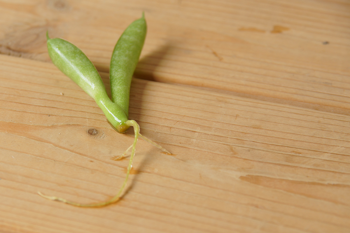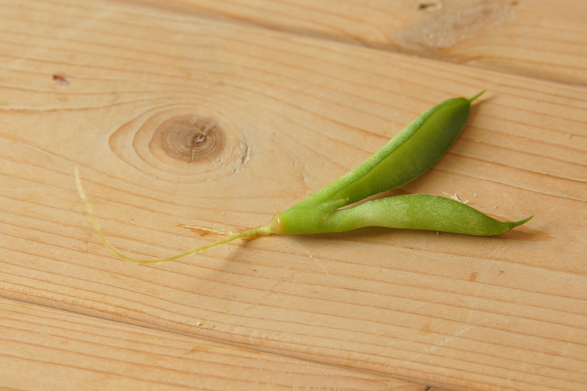 その発根した根はずっと一本だけの根のままだったのですが、その根のある様子というのがこちらの写真を見ていただくと、根の上部付近で左右に枝分かれした短い根がでています。