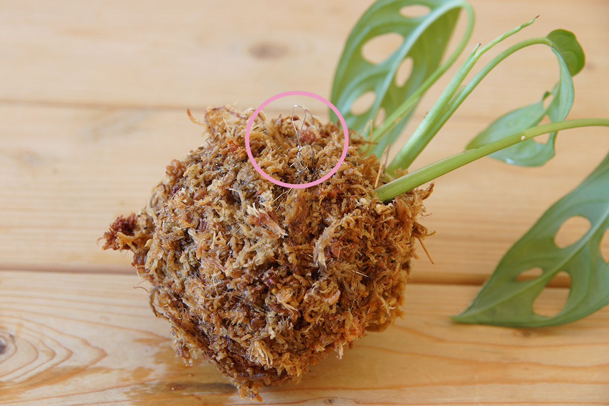 あとは水を一旦切り、根を覆うように水苔で挟んで丸め、そしてステンレスワイヤーで固定するだけです。