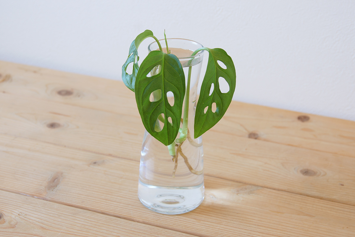 すぐに苔玉にすると断面から雑菌などが入る可能性があることを考慮して、改めて水挿しにして断面が自然に保護されるまで待つことにしました。