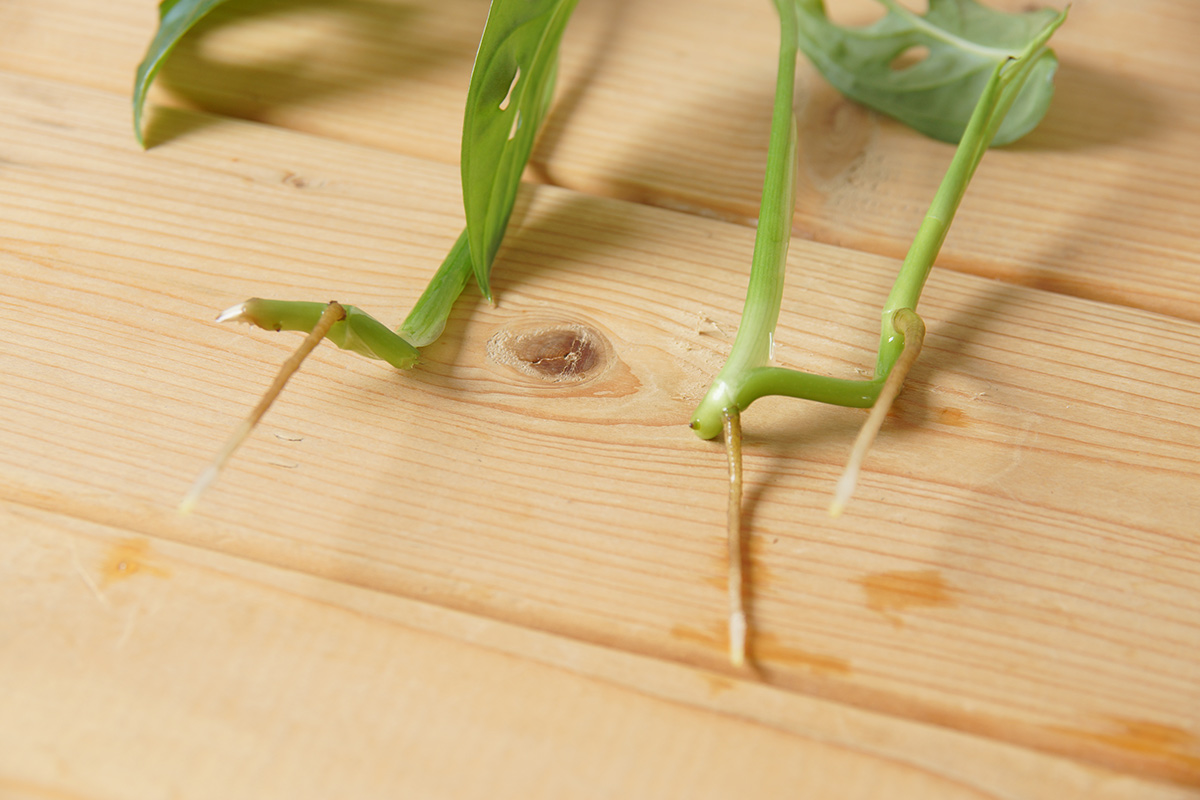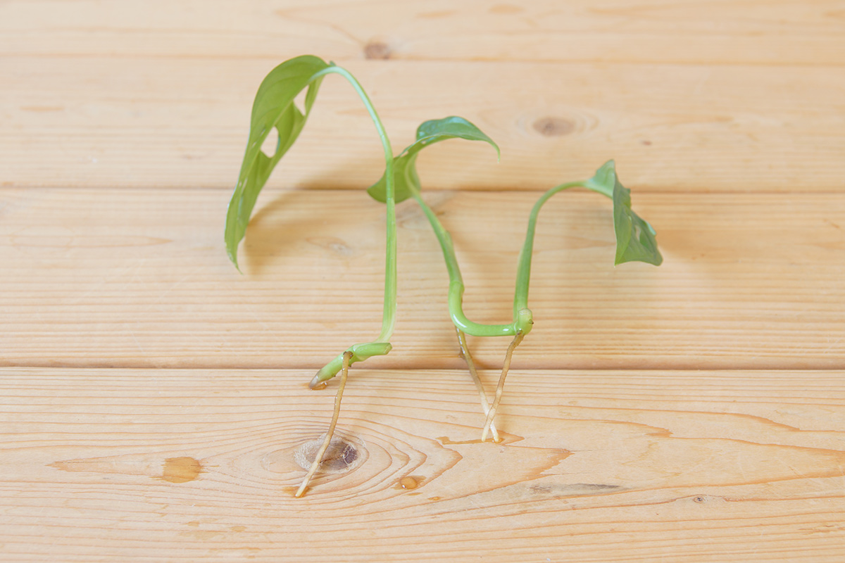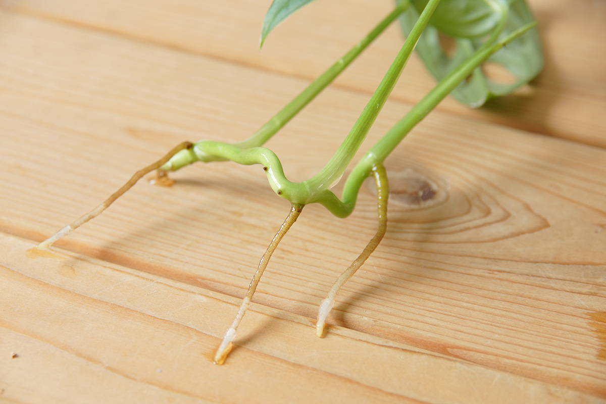 それはこのように茎が横向きになり、根が横に3カ所から発根していることです。