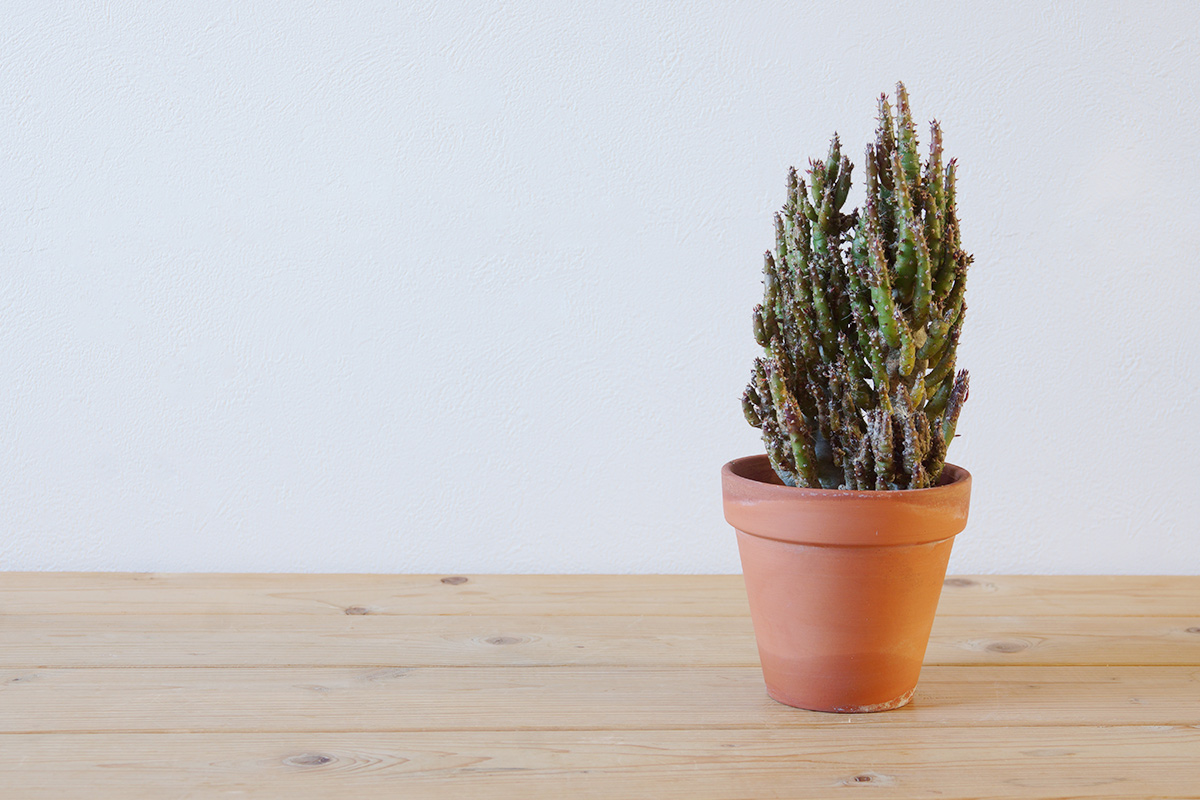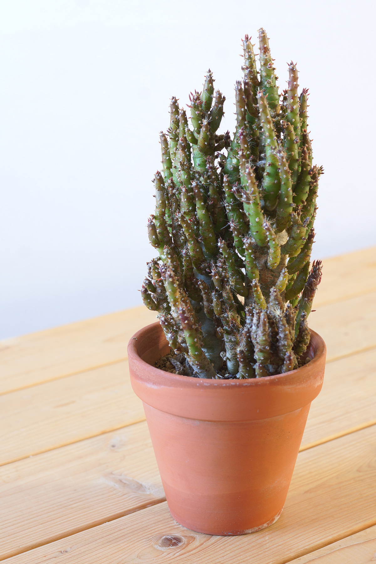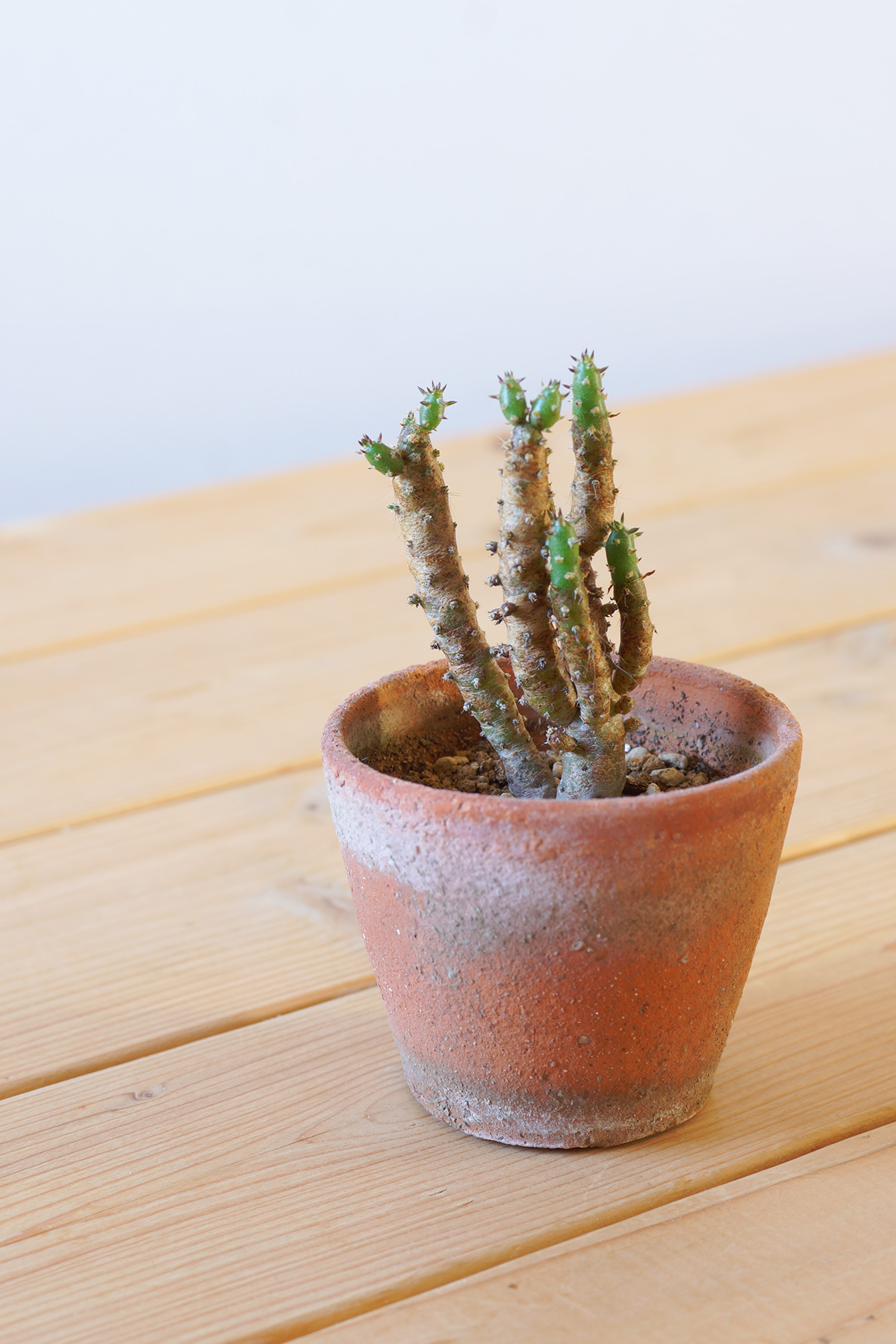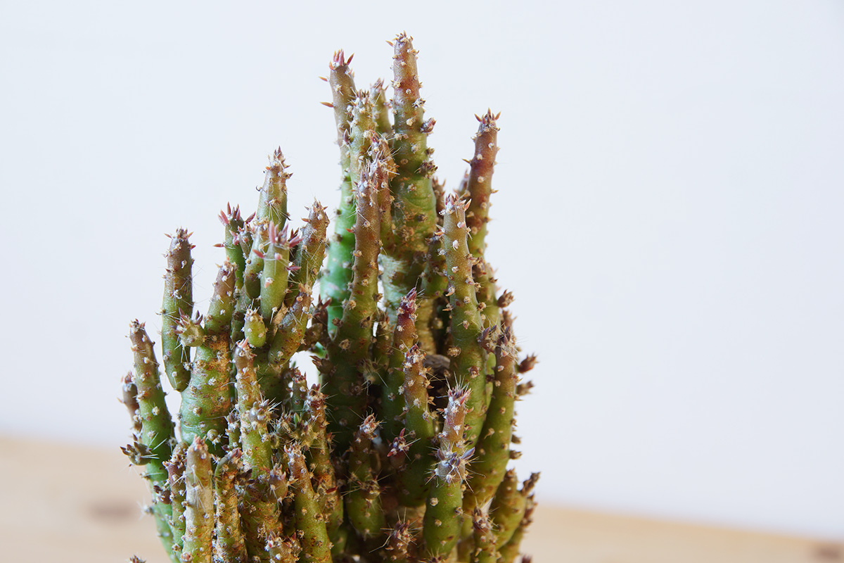 この親株にあたる姫将軍は屋外に置いていて、日に当たることで葉焼けして伸びないのではないかと思われてるかもしれませんが、この根元付近左側のわき芽より少し生長しているぐらいの子株を室内の窓際で育てていますので、そちらの株はどのようなトゲの様子なのかと併せ現在の様子をご紹介します。