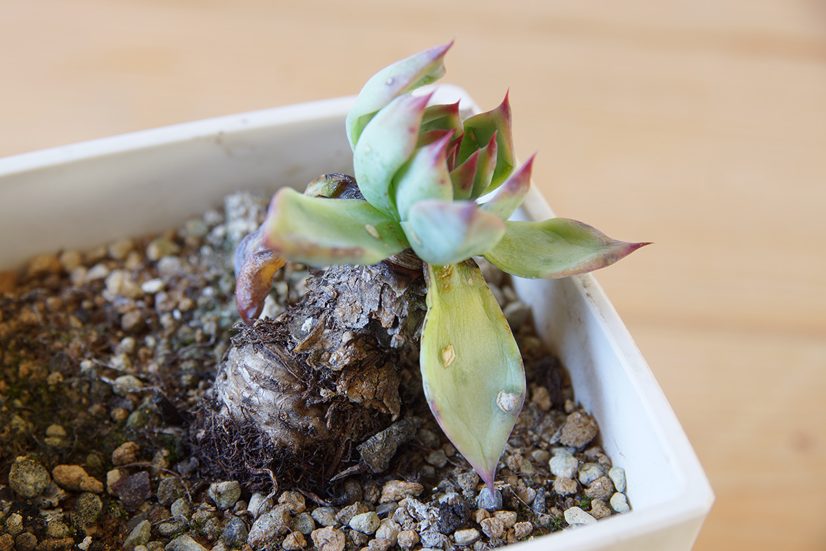 鉢の大きさと株のサイズがアンバランスですが、これは改善していくと以前のような株姿になると生長した様子が想像できますので、そうなるよう期待したいと思います。