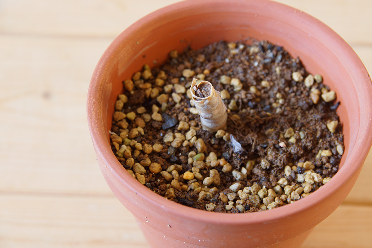 そしてカットしたこの元株ですが、このままでは伸びた根が気になります。