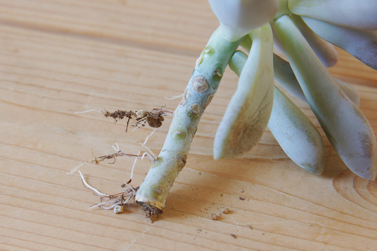 あまりこのようなことはしない方がいいと思いますが、少しでも興味をもってもらいたい、そして徒長は改善できるということを伝えたいと考え、目で見て実感してもらえるように、株を土から抜き出し、根の様子を撮影してお伝えしました。