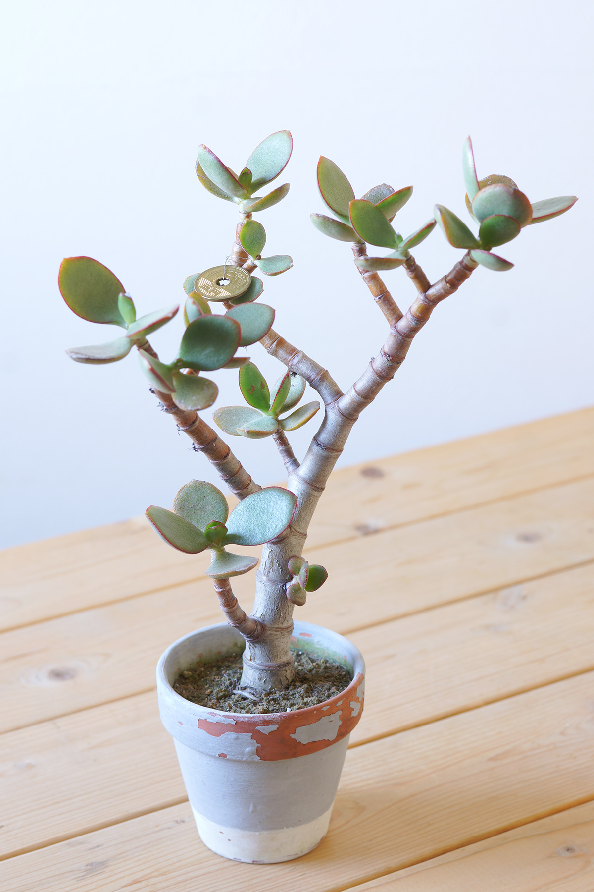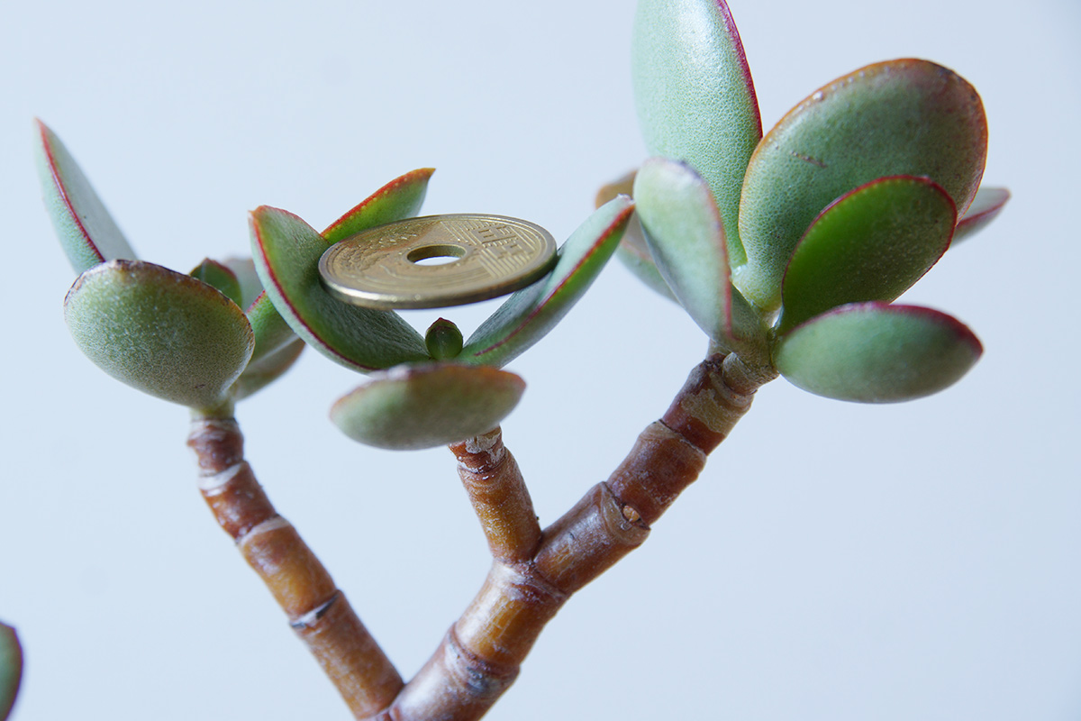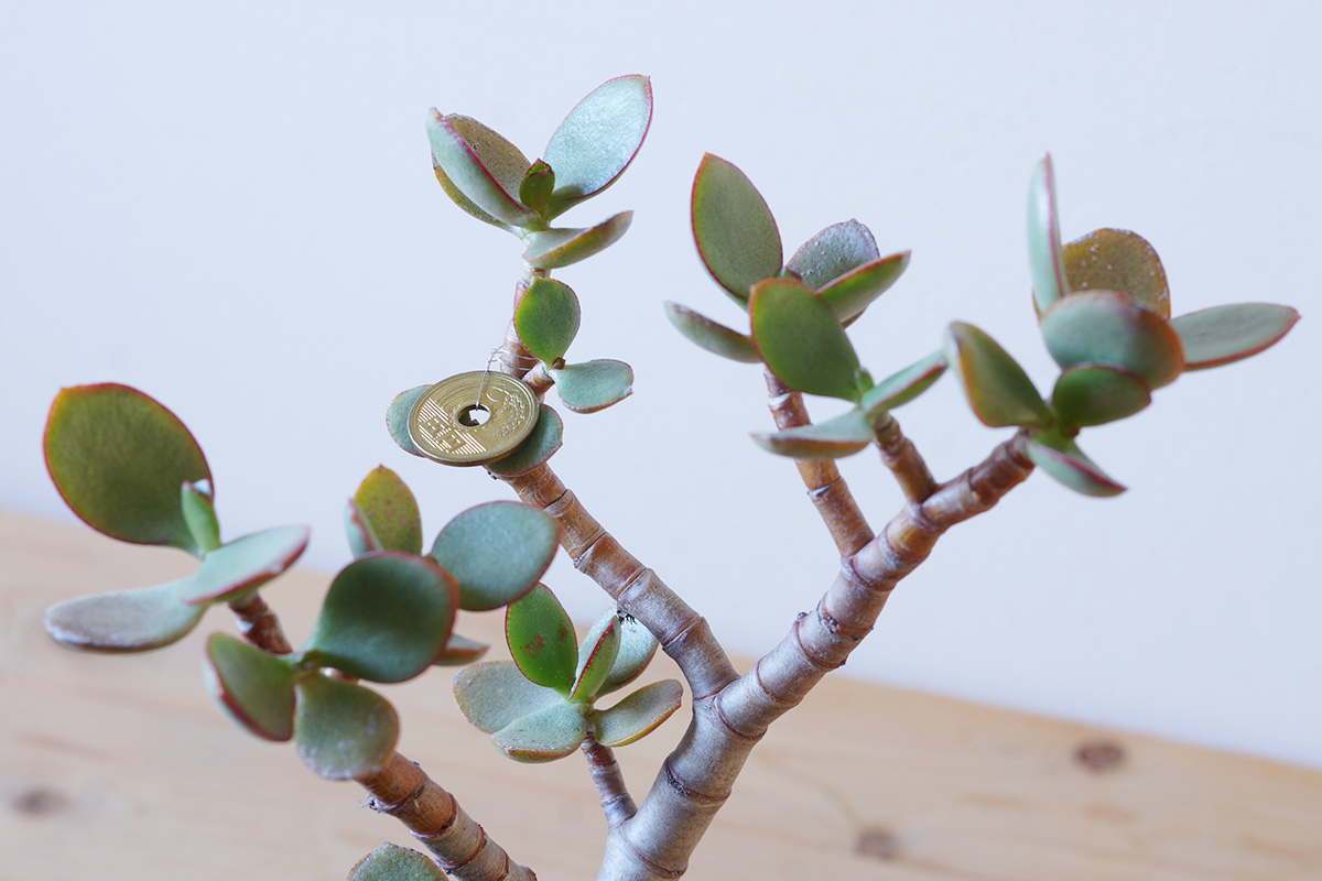 今回は、金運を呼び込んでもらえるようにとクラッスラ属の多肉植物「金のなる木」に験担ぎとなる試作をしましたので、その様子をご紹介します。