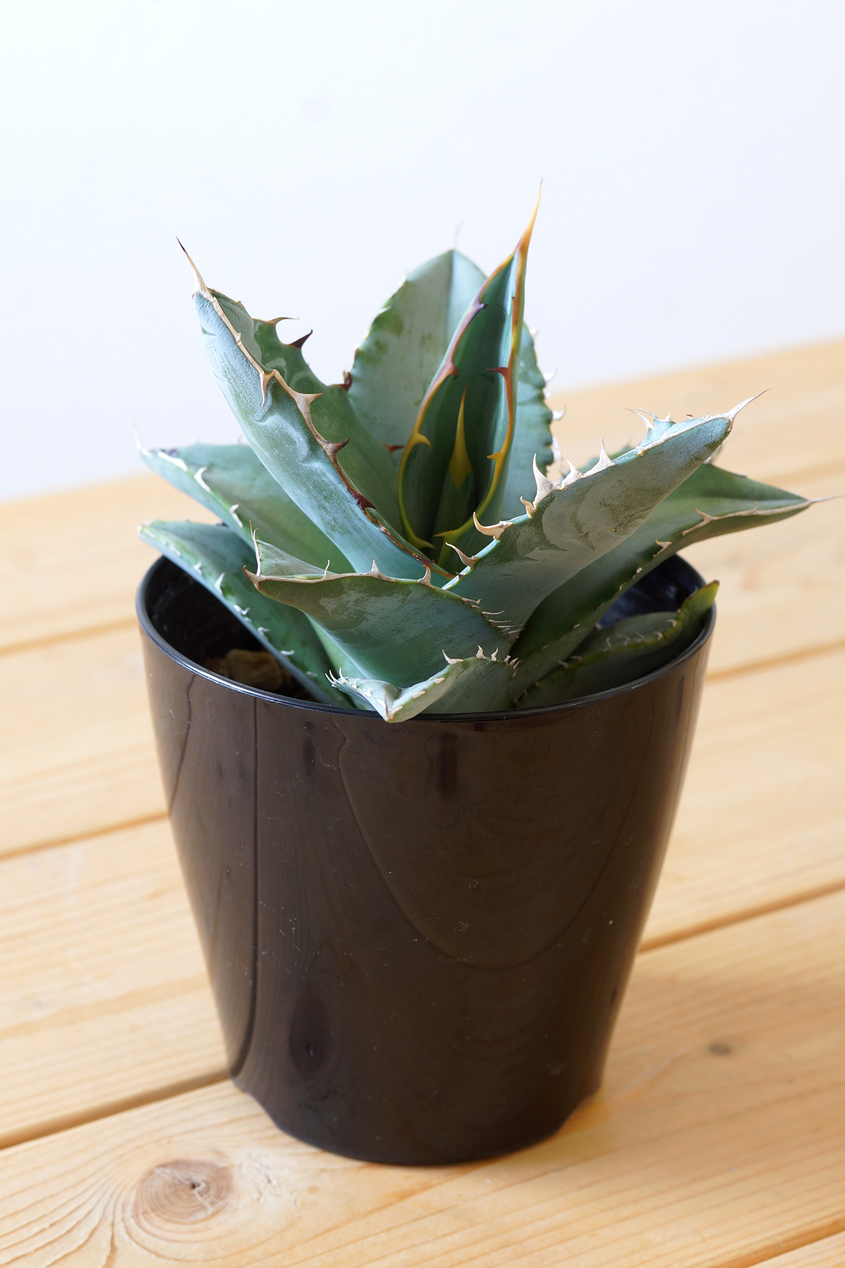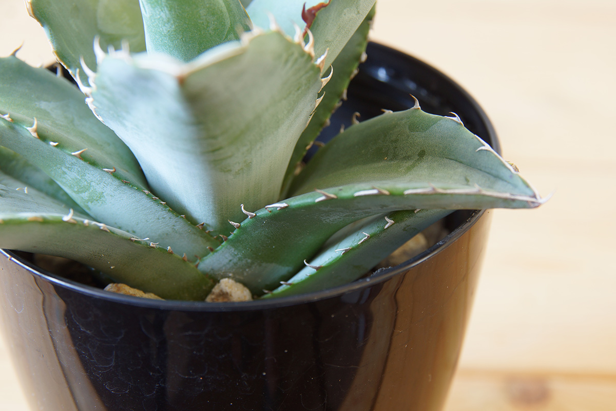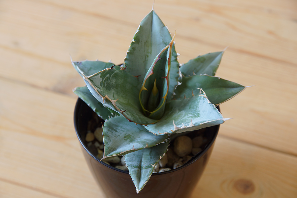 それがアガベ・チタノタ ブルーで、唯一あの日差しの中トラブルなく過ごしていて、今ではアベガ属らしい、なんとなく少し獰猛な表情を見せ始めてくれましたので、それがどういった様子なのか現在のアガベ・チタノタ ブルーの様子をご紹介します。